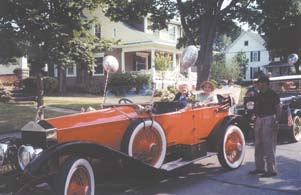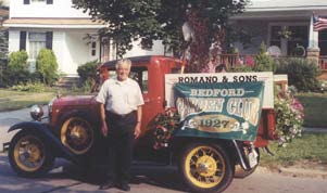 John Romano and his 1929 Ford Truck, bedecked with flowers lead the Club’s entry of six classic vehicles in the 2002 Fourth of July Parade.