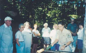 The chirping of cicadas announcing the temperature of the day, the screech of a Red-shouldered hawk, a rare chestnut tree, and a hundred year-old maple tree were some of the sights and sounds enjoyed by members in August. The nature walk lead by our favorite naturalist, Wendy Weirich, followed by a breakfast buffet at Look-About-Lodge, offered something for everyone in this year’s celebrations. Not eager to leave the pleasant surroundings, Pete Dickson played his harmonica, while all joined Don Flagg in a sing-along.
