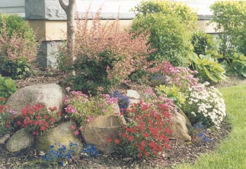 Making good use of a small space, Dave and Lisa Sweeney on Tarbell Avenue have filled their rock garden with dianthus, lobelia, rosyglow barberry and hostas, just to name a few.